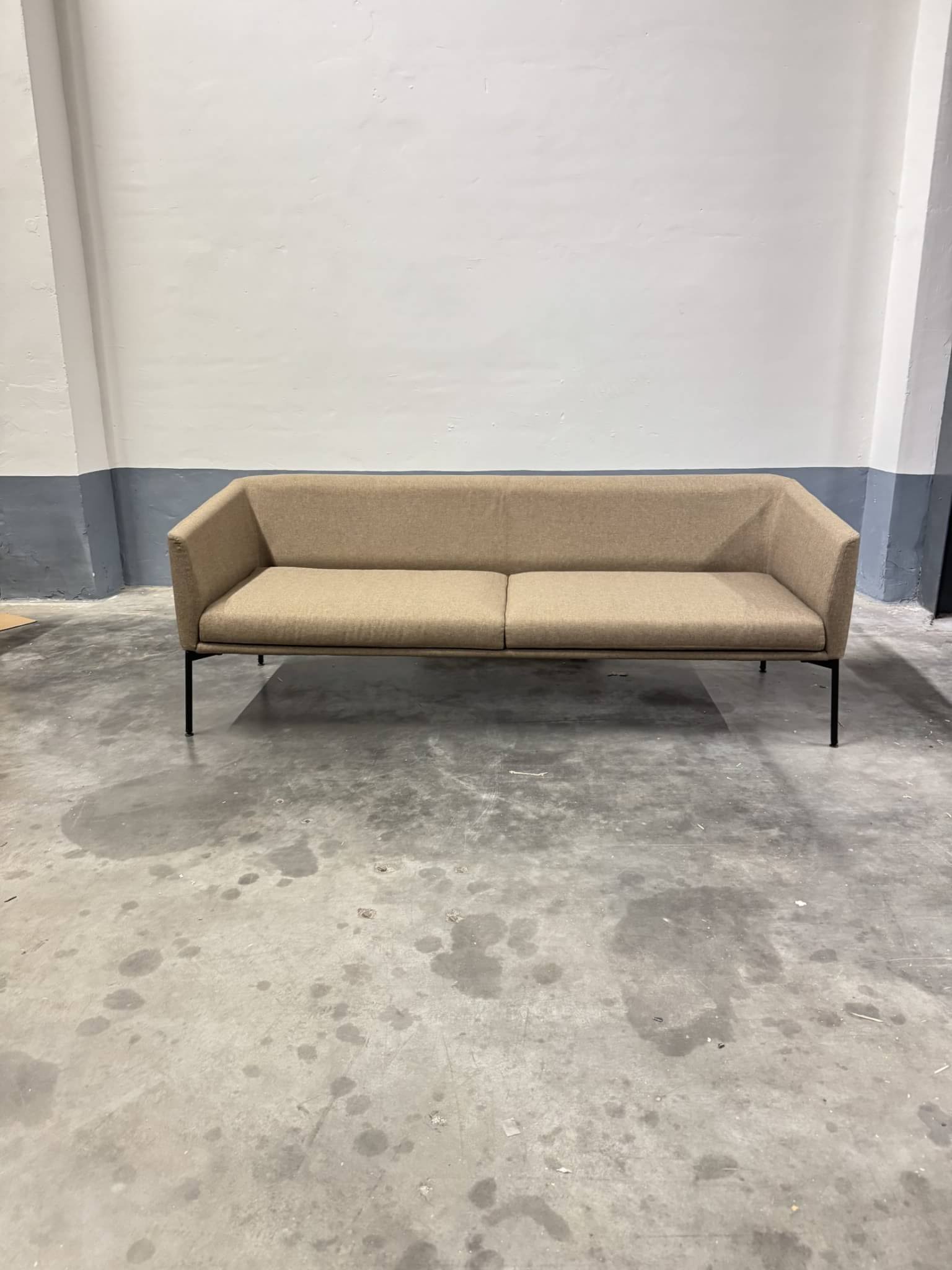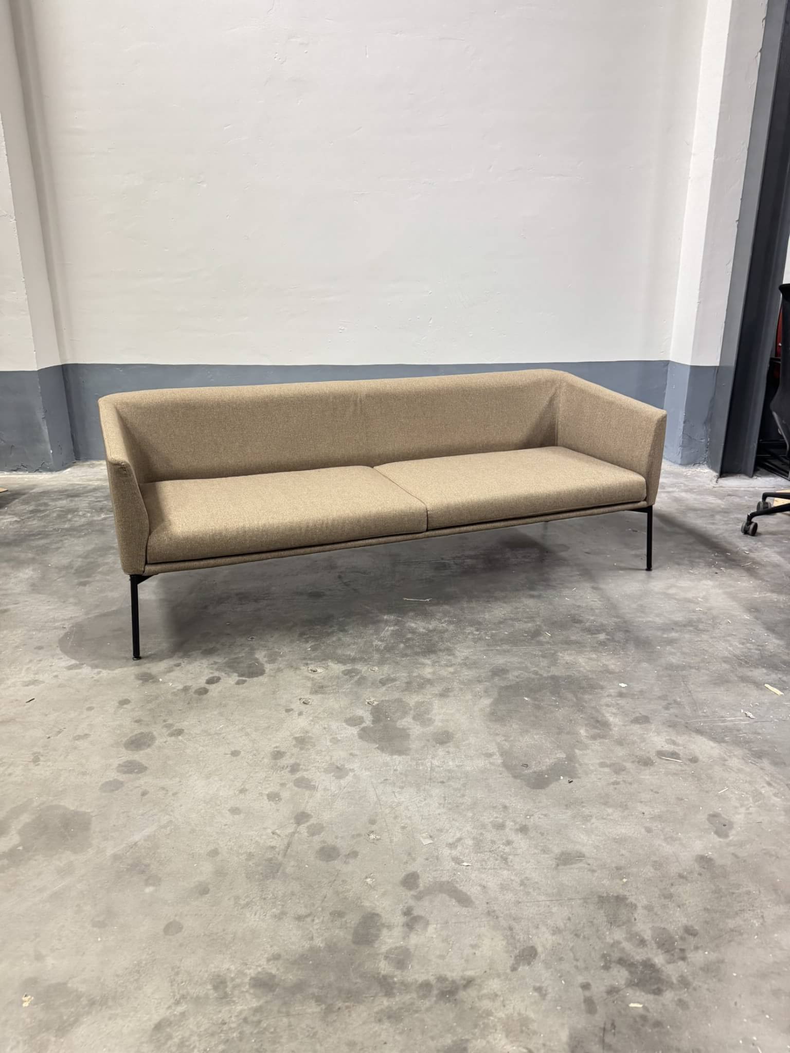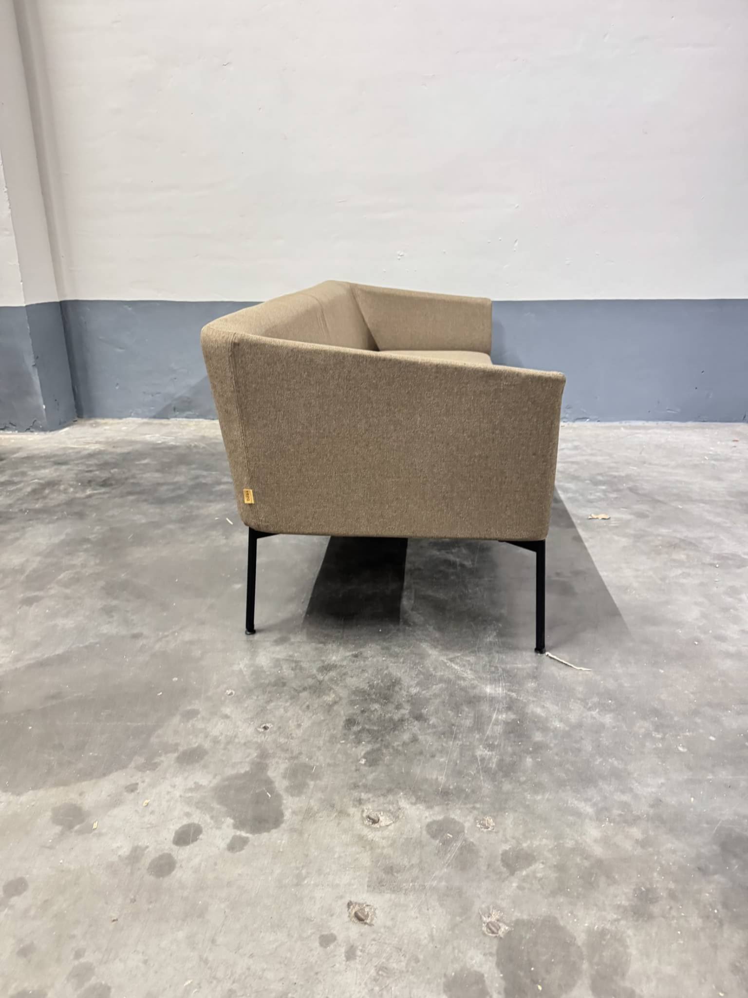 Deze tweedehands Vepa bank van 200 cm breed is een stijlvolle en comfortabele zitoplossing voor elke kantoor-, ontvangst- of loungeomgeving. Het slanke ontwerp, de bruine stoffering en het subtiele metalen frame geven de bank een moderne en professionele uitstraling. Perfect voor wachtruimtes, informele overleggen of een comfortabele zithoek in kantoorruimtes.