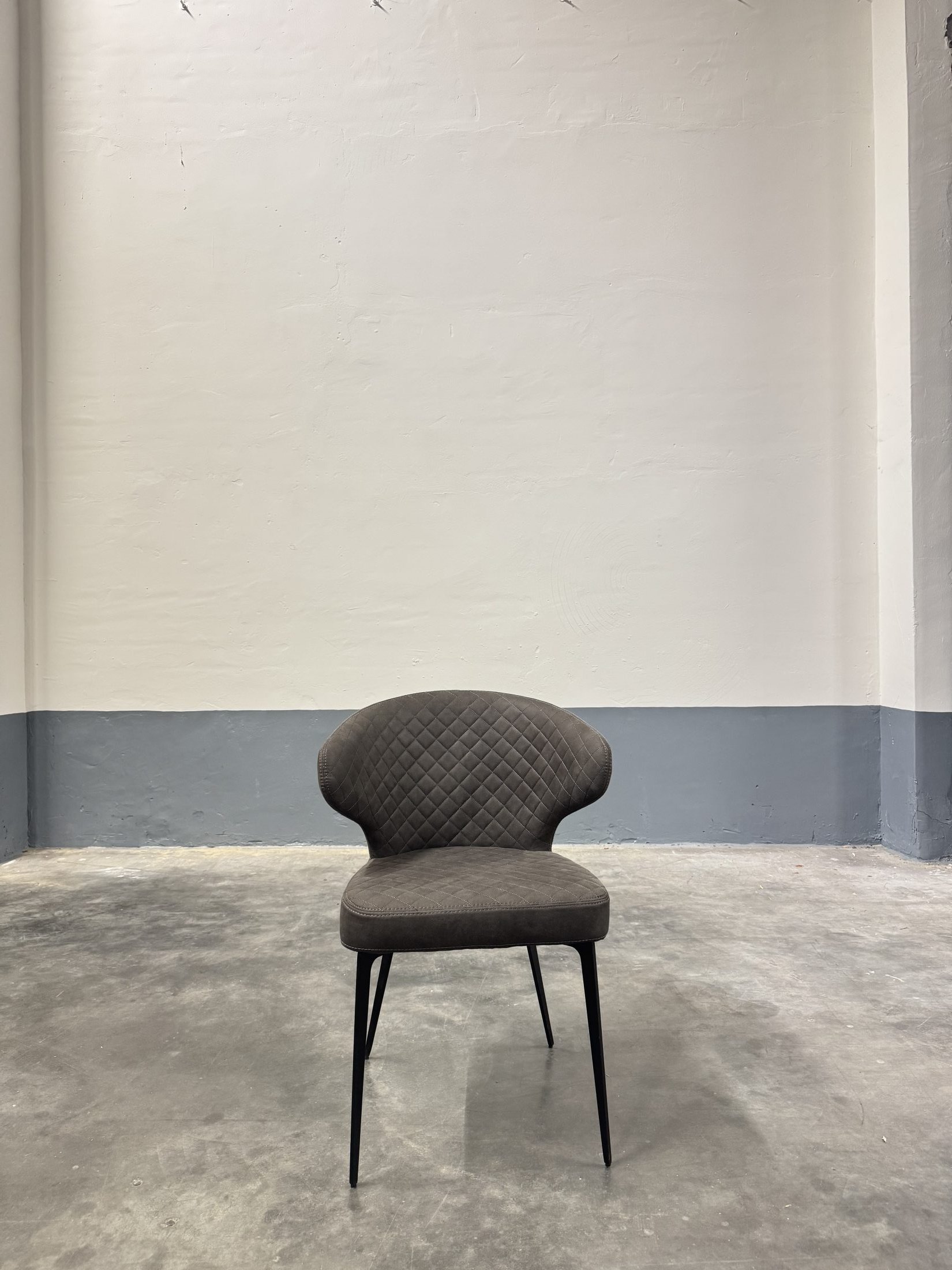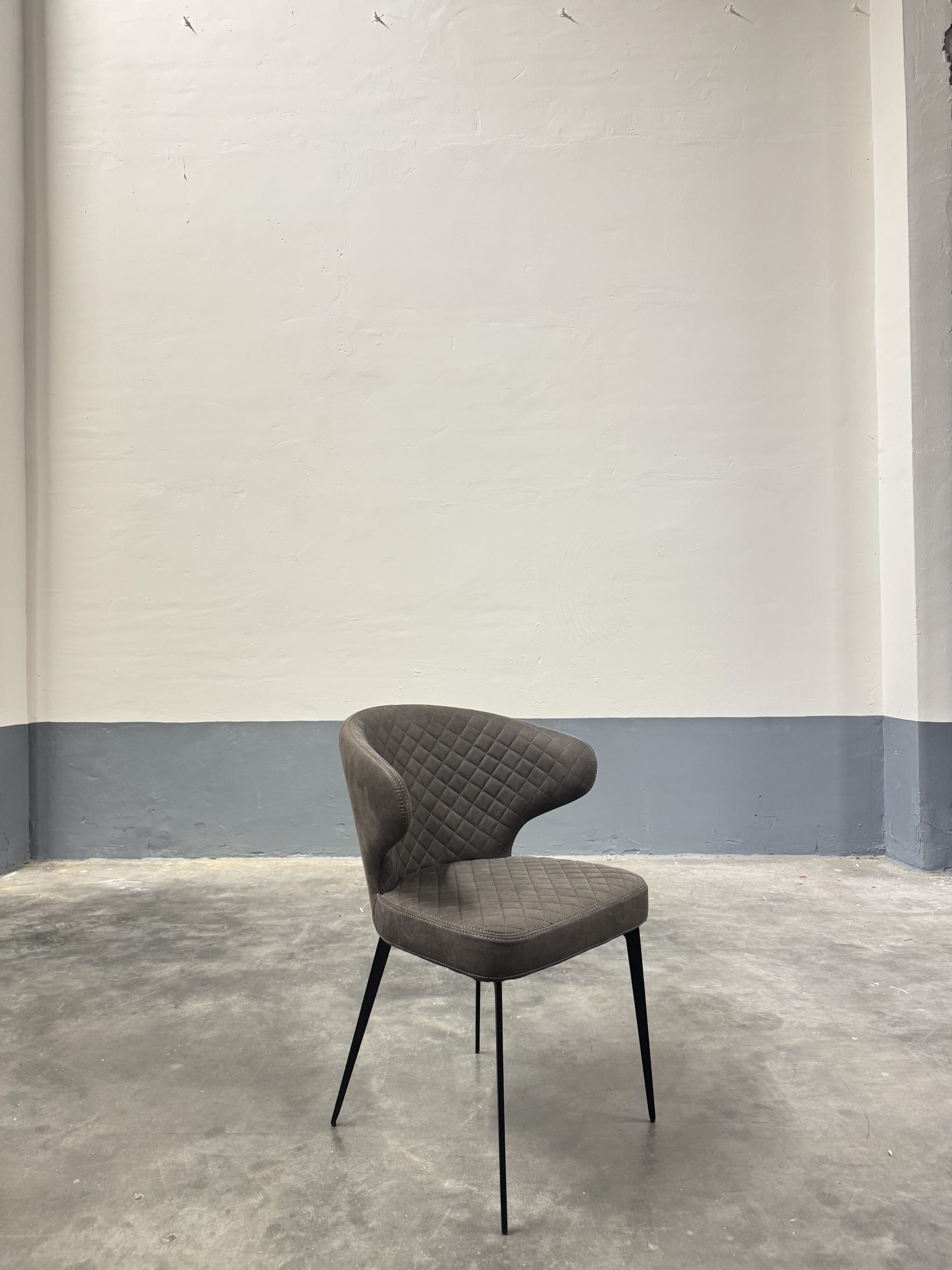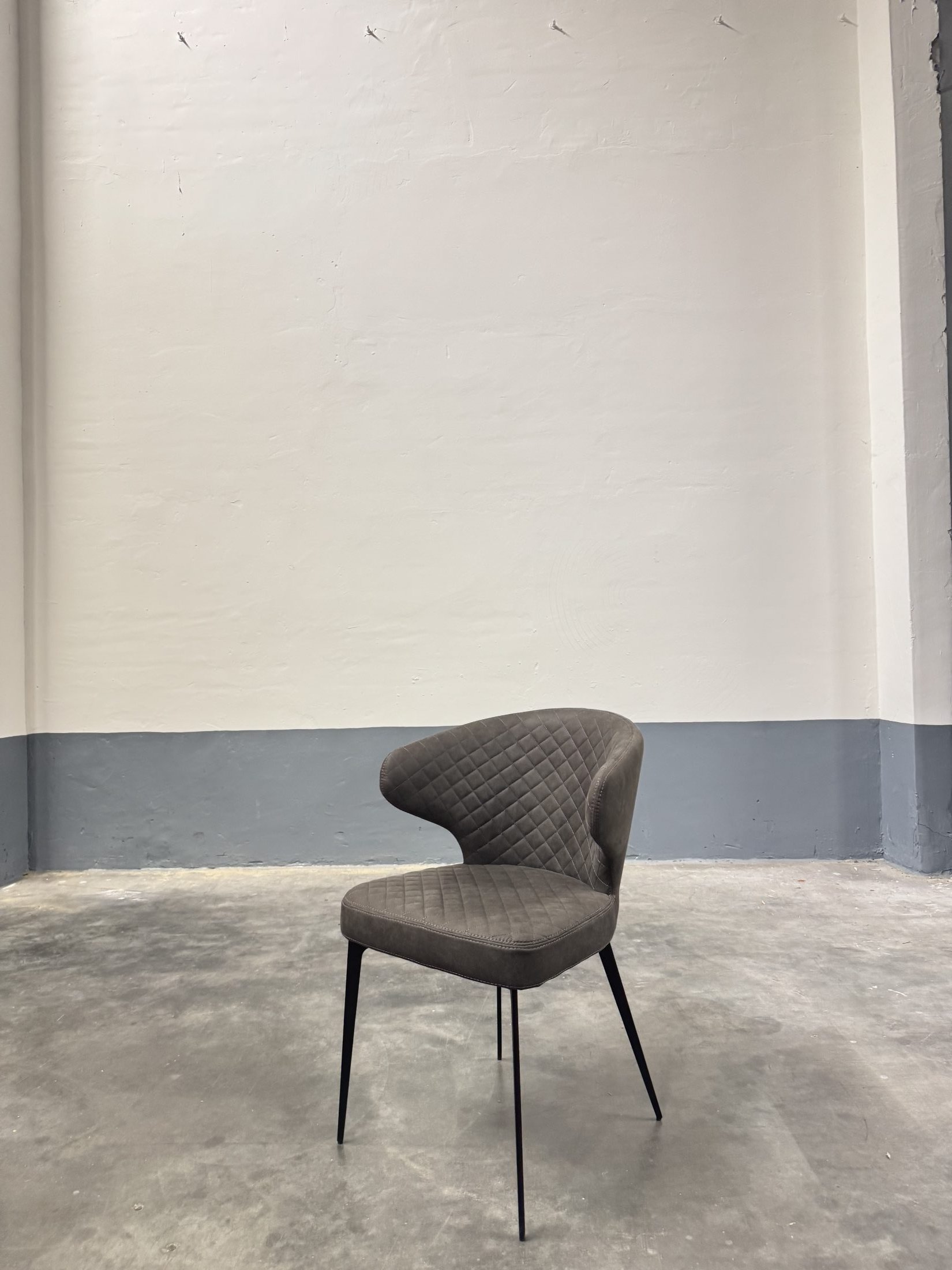 Tweedehands Treasure stoel uitgevoerd in grijs leer met ruitenpatroon. Comfortabele en karaktervolle stoel voor kantoor-, vergader- en projectomgevingen.